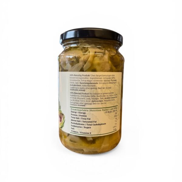 Artisjokk er kjent som en ekte superfood, rik på antioksidanter, fiber og viktige næringsstoffer som støtter fordøyelsen og bidrar til en sunn livsstil. Sammen med førsteklasses olivenolje gir dette en balansert og smakfull opplevelse.