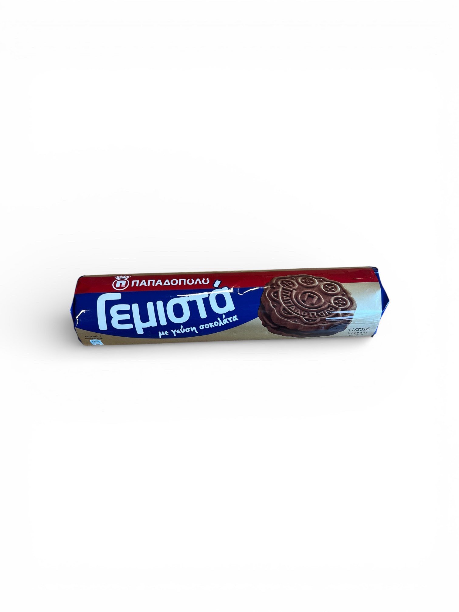 De klassiske Gemista-kjeksene fra Papadopoulou er en gresk favoritt! Sprø, gyllenbrune kjeks fylt med deilig, kremet sjokoladefyll – perfekt til kaffe, te eller som en søt snack når du vil unne deg noe godt.