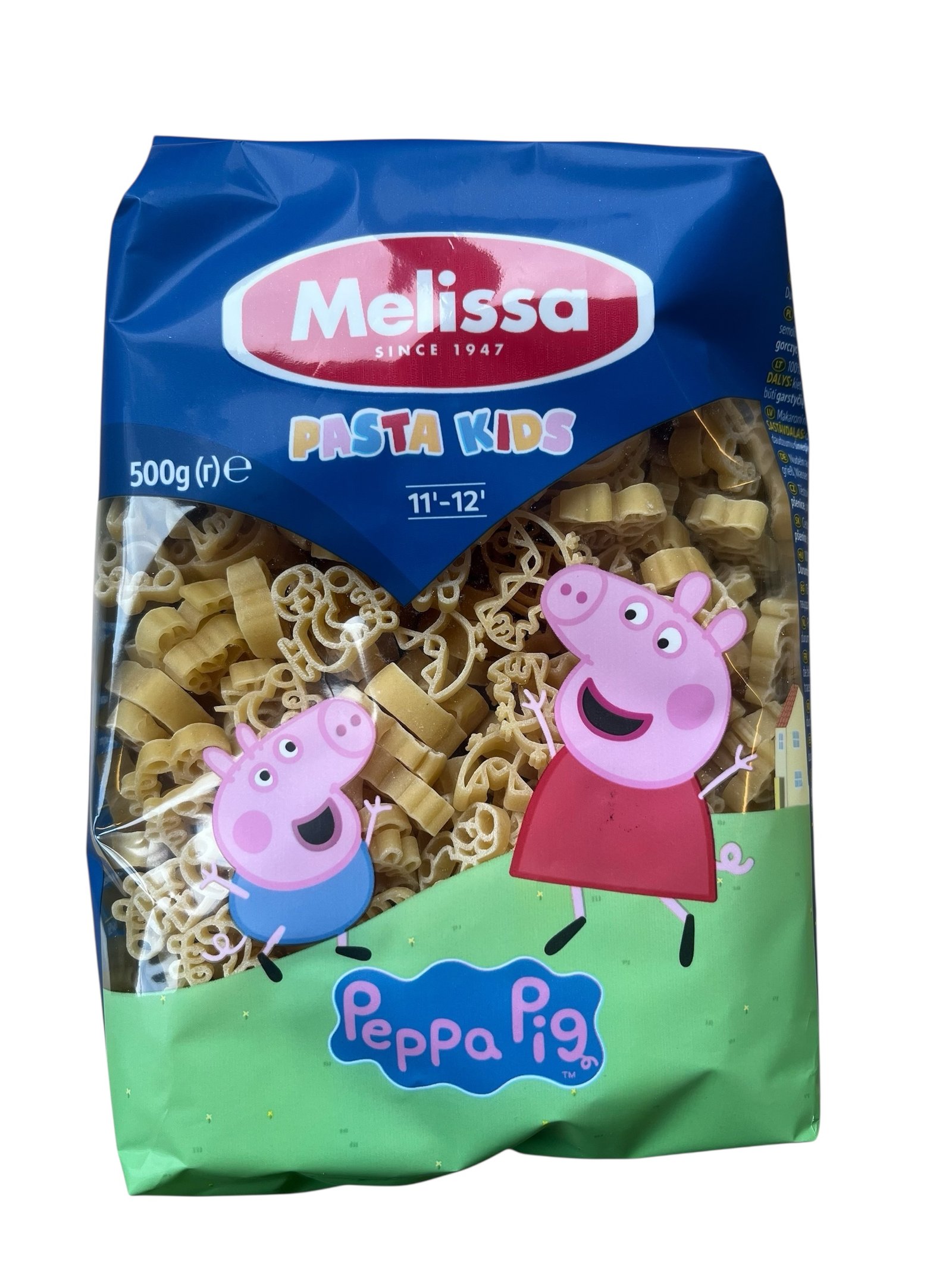 Gjør måltidene morsomme med Melissa Pasta Kids, spesialformet pasta med elskede figurer fra Peppa Gris! Perfekt for de små, denne 500 g pakken inneholder pasta formet som Peppa, Georg og andre morsomme design som vil bringe smil til bordet.
